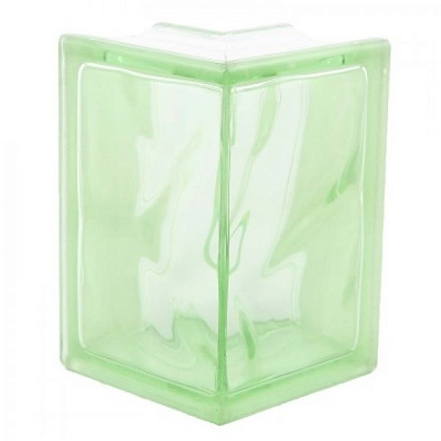 Стеклоблок угловой окрашенный в массе Волна зеленый (190х152х80)