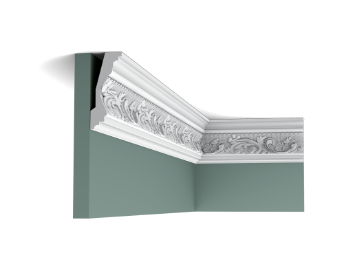 Классический карниз с детальным листовым узором. Этот карниз станет ярким акцентом вашего интерьера.