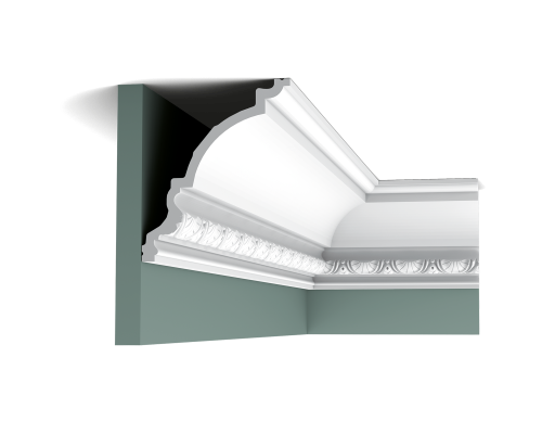 Классический карниз с деталями орнамента. Этот профиль лучше всего подходит для больших помещений.
