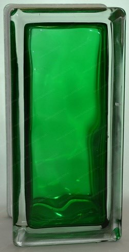 Стеклоблок половинка окрашенный внутри Волна изумруд (190х90х80)
