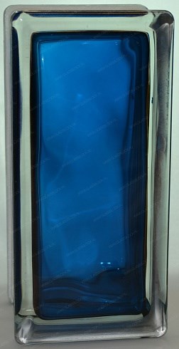 Стеклоблок половинка окрашенный внутри Волна синий (190х90х80)