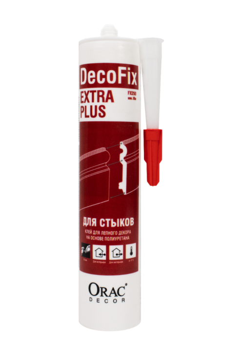Стыковочный клей на полиуретановой основе для соединительных швов лепного декора 310 ml, расход > 80 м Срок годности клея 18 месяцев. Использовать до даты, указанной на упаковке. · Избыток клея предпочтительно удалять до затвердевания (макс 1 час и повтор каждые 2-3 часа) · После полного высыхания обработать стык наждачной бумагой · Лепной декор можно окрашивать через 24 часа · Чем больше влажность, тем меньше время высыхания · Допускается работа при температуре -5°C до +45°C · Durofoam®: используйте стыковочный клей DecoFix Pro / DecoFix Power Клей наносится на все поверхности склейки изделия (полная длина, полная ширина). Воспользуйтесь Калькулятором клея, чтобы проверить достаточный объем используемого клея.
